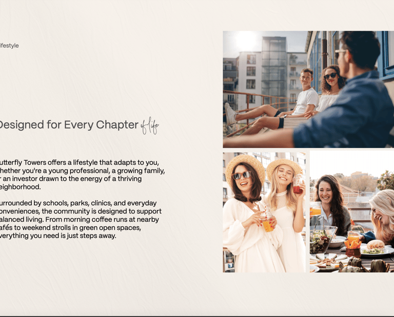 Butterfly Towers offers a lifestyle that adapts to different needs — whether you are a young professional, a growing family, or an investor looking for a high-potential location. The community is surrounded by schools, parks, clinics, cafés, and daily conveniences, supporting balanced and connected living.