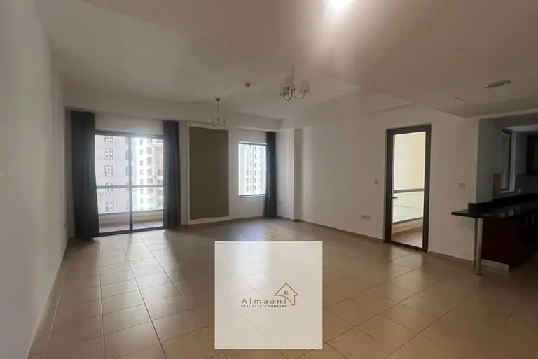 The unit features a generous living and dining area, an unfurnished layout allowing for personal customization, and a balcony ideal for enjoying the surrounding views. Perfect for professionals or couples seeking a vibrant coastal lifestyle with direct access to the beach and JBR Walk.