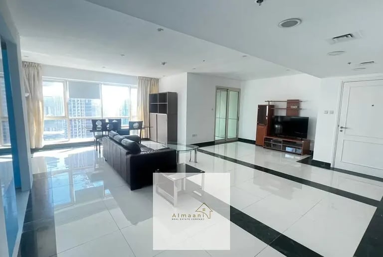 This large 2-bedroom apartment is located in The Royal Oceanic, Dubai Marina, one of the area’s most well-known waterfront residential towers. Positioned on a high floor, the apartment benefits from generous living spaces, abundant natural light, and a well-planned layout ideal for families or professional tenants.