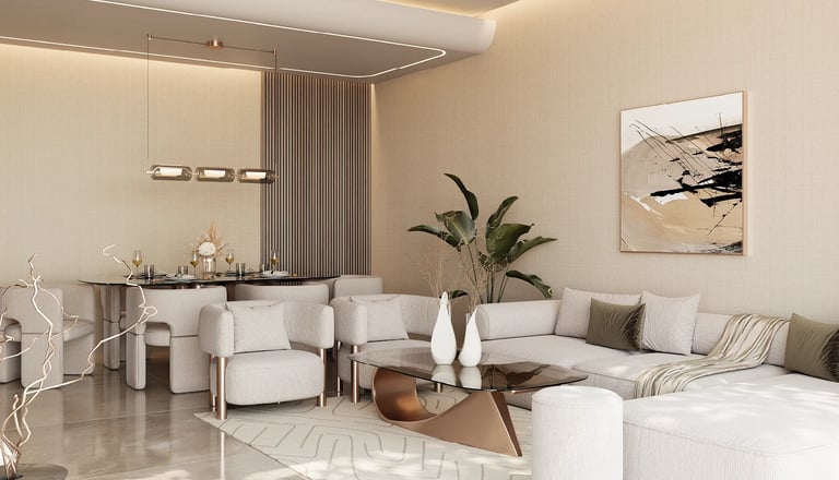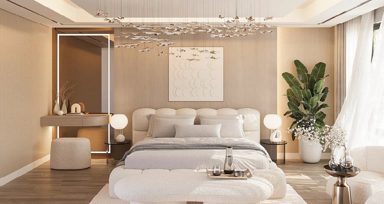 Bedroom & Living Spaces: Wide panoramic windows allow for abundant natural light and seamless connection to the outdoor scenery. Penthouses offer high ceilings and private terraces, while duplexes are designed with double-height living rooms.